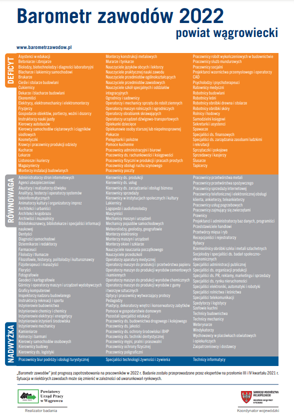 Barometr zawodów jest badaniem ogólnopolskim, realizowanym przez powiatowe urzędy pracy we współpracy z prywatnymi agencjami zatrudnienia i instytucjami zajmującymi się popularyzacją szkolnictwa zawodowego i kształcenia dualnego oraz doradztwem zawodowym na lokalnych rynkach pracy.