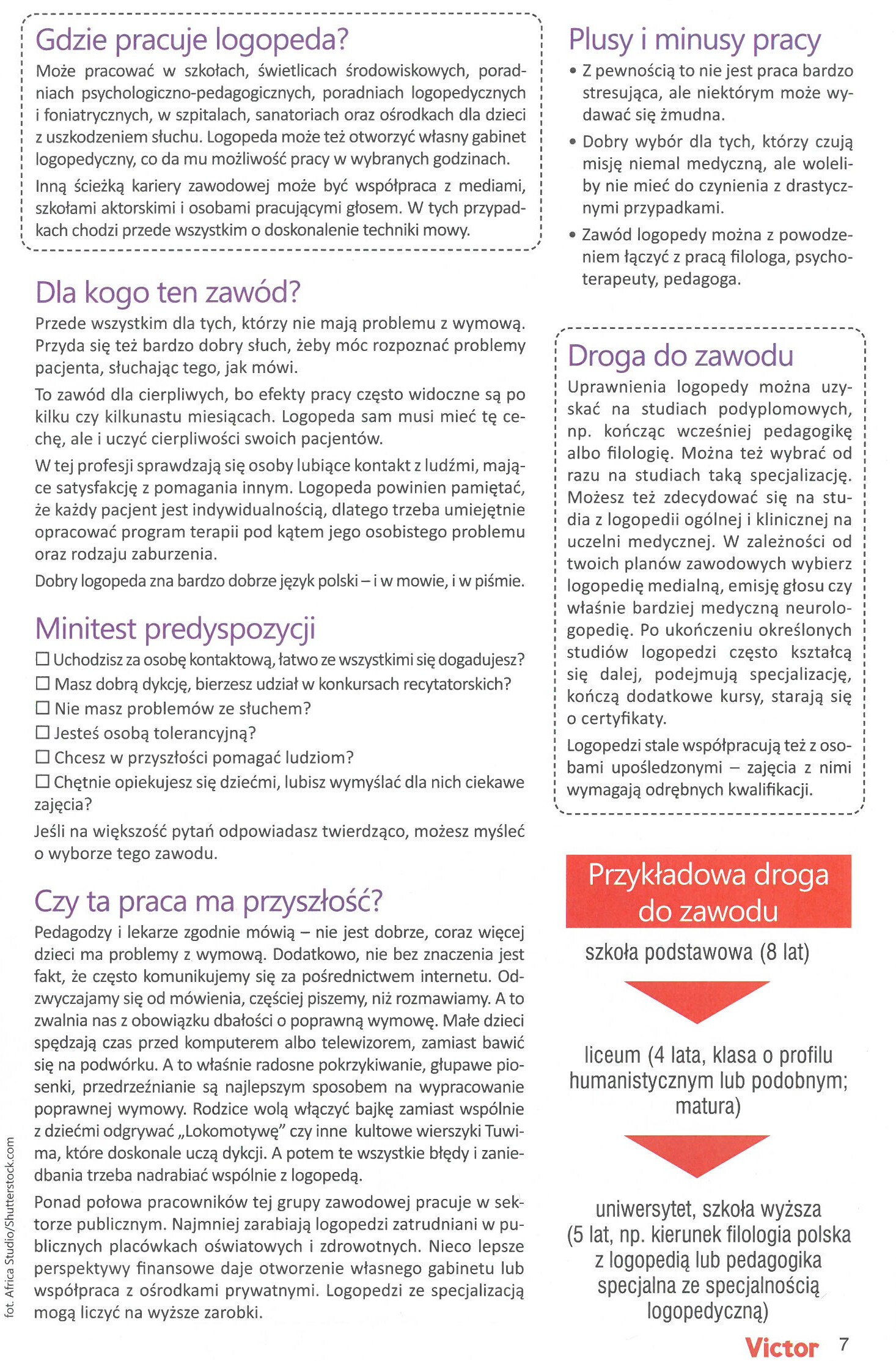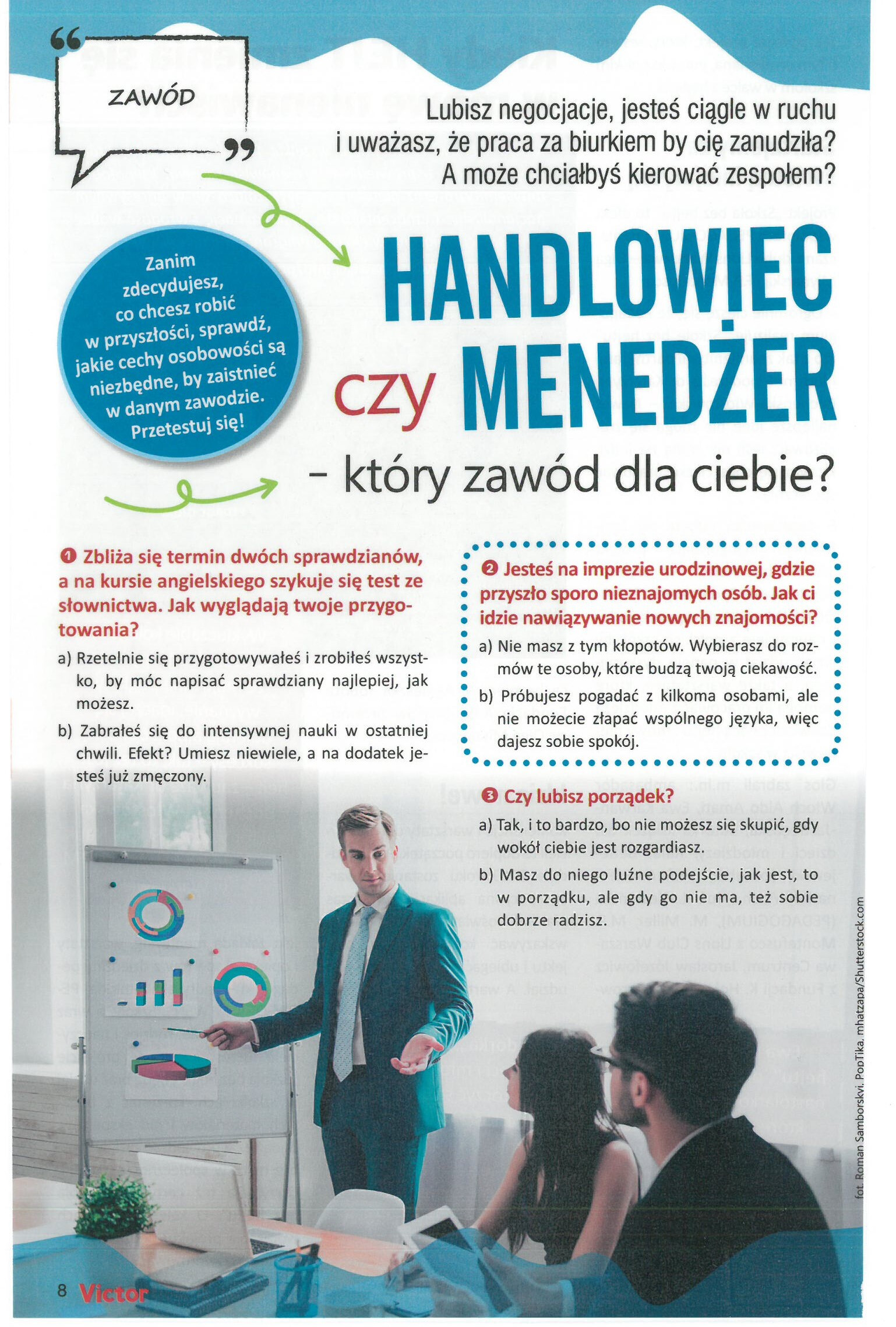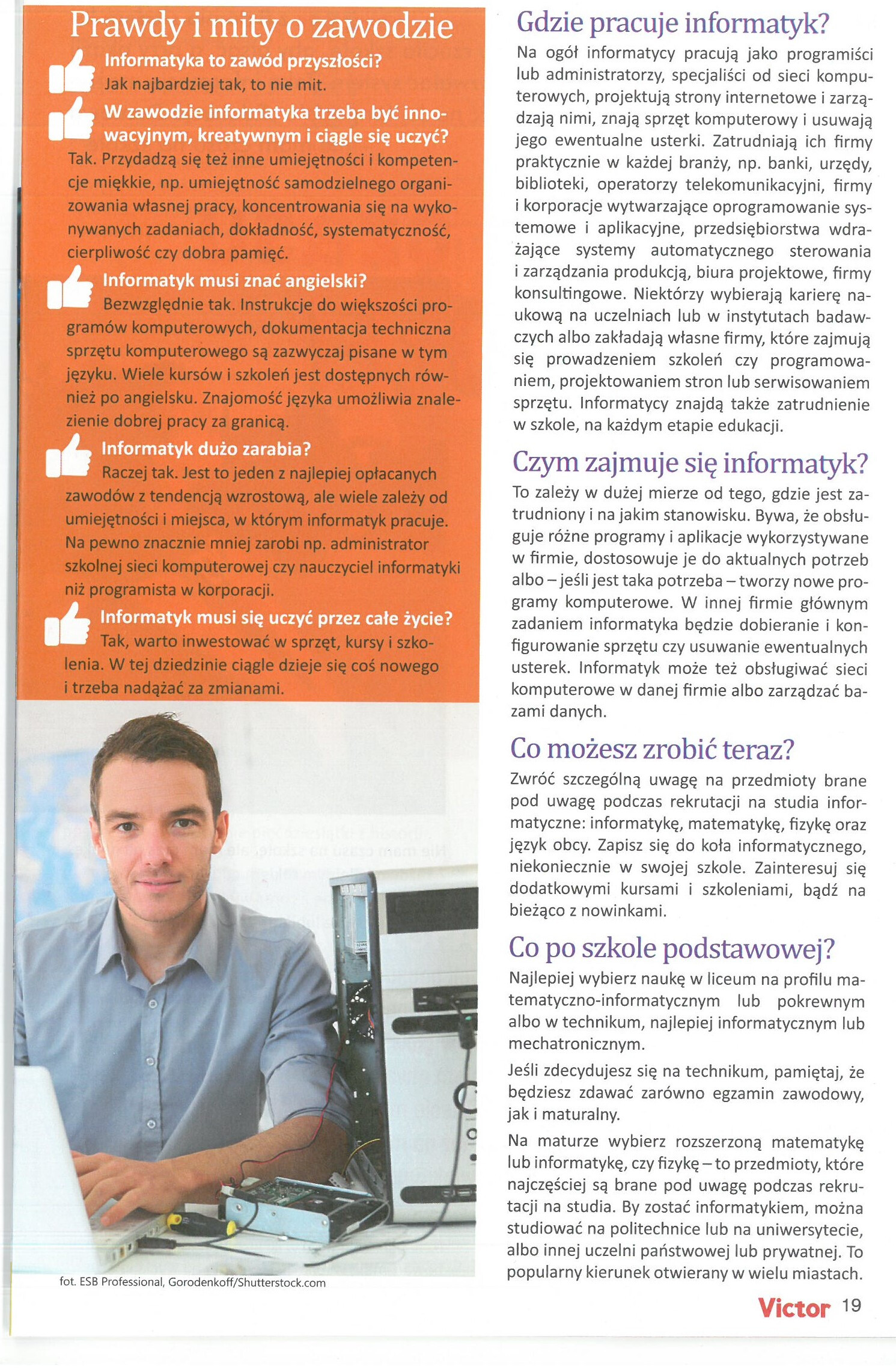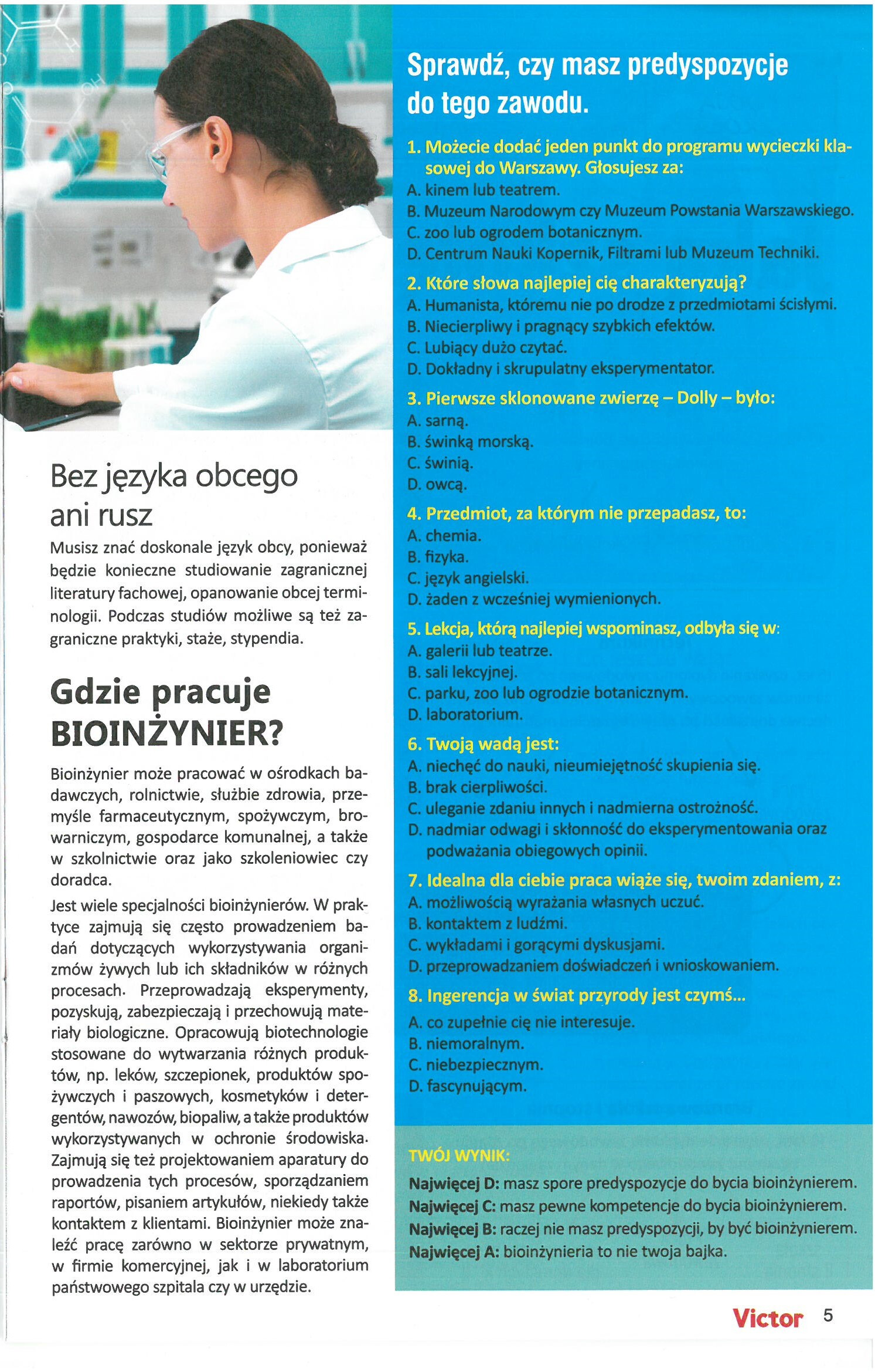 Jeśli rozważasz wybór szkoły, to mogą pomóc Ci testy predyspozycji zawodowych, które dzięki wydawnictwu Victor prezentujemy poniżej. Możesz wybrać interesujące Cię zawody umieszczone w załączonych grafikach i zrobić testy. Życzymy powodzenia i dobrej zabawy.