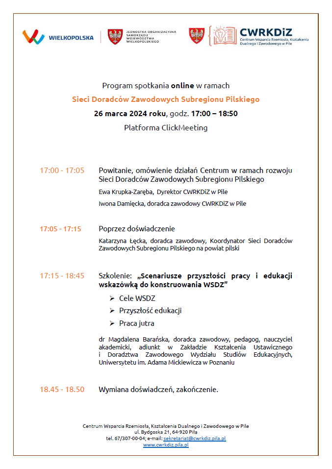 Spotkanie szkoleniowe online dla Sieci Doradców Zawodowych Subregionu Pilskiego