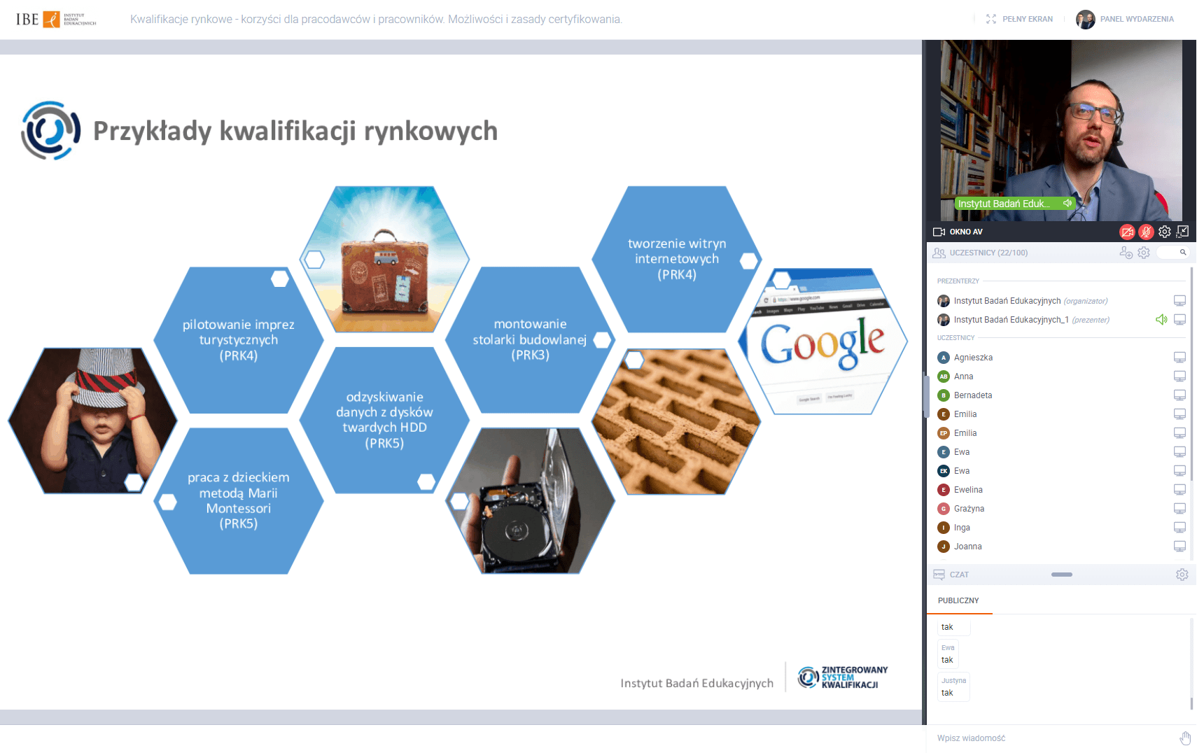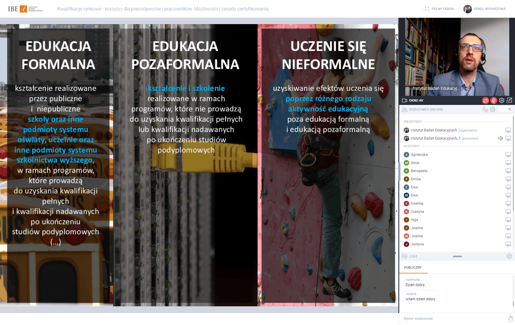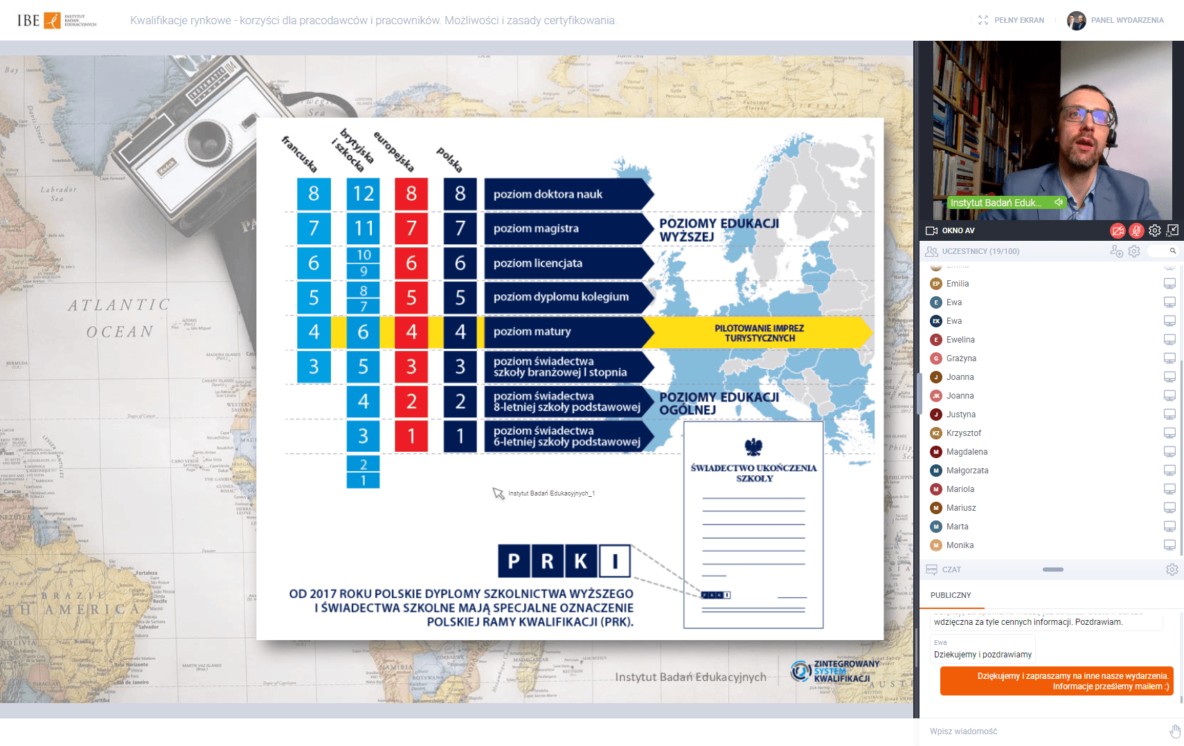 Zorganizowane przez nasze Centrum i przy współudziale IGPW w Pile spotkanie robocze pt. „Kwalifikacje rynkowe - korzyści dla pracodawców i pracowników odbyło się 18.06.2020 w wirtualnej sali. Spotkanie poprowadzili przedstawiciele Instytutu Badań Edukacyjnych Sławomir Szymczak i Jan Kosmowski.