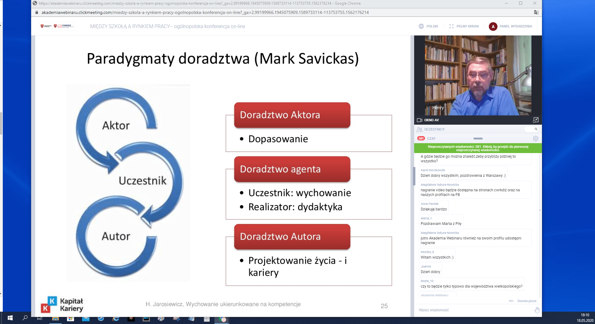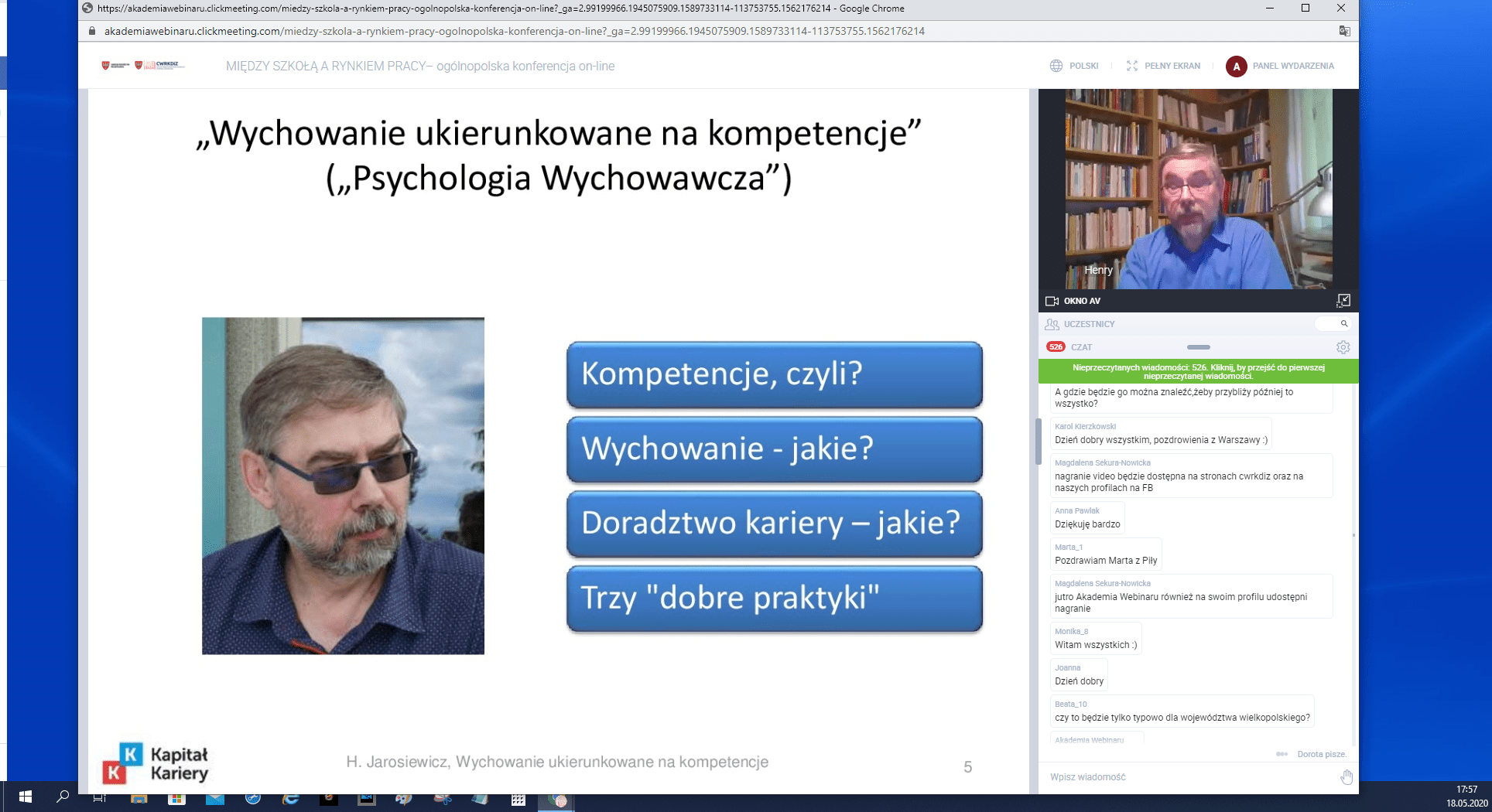 Ogólnopolska konferencja online „MIĘDZY SZKOŁĄ A RYNKIEM PRACY” jest już za nami. W poniedziałek, nietypowo, bo w godzinach popołudniowych, na 3,5 godziny wielkopolskie Centra Wsparcia Rzemiosła, Kształcenia Dualnego i Zawodowego wraz z Akademią Webinaru zatrzymały w sumie ponad 1,5 tysiąca osób przed ekranami swoich laptopów, tabletów i smartfonów.
