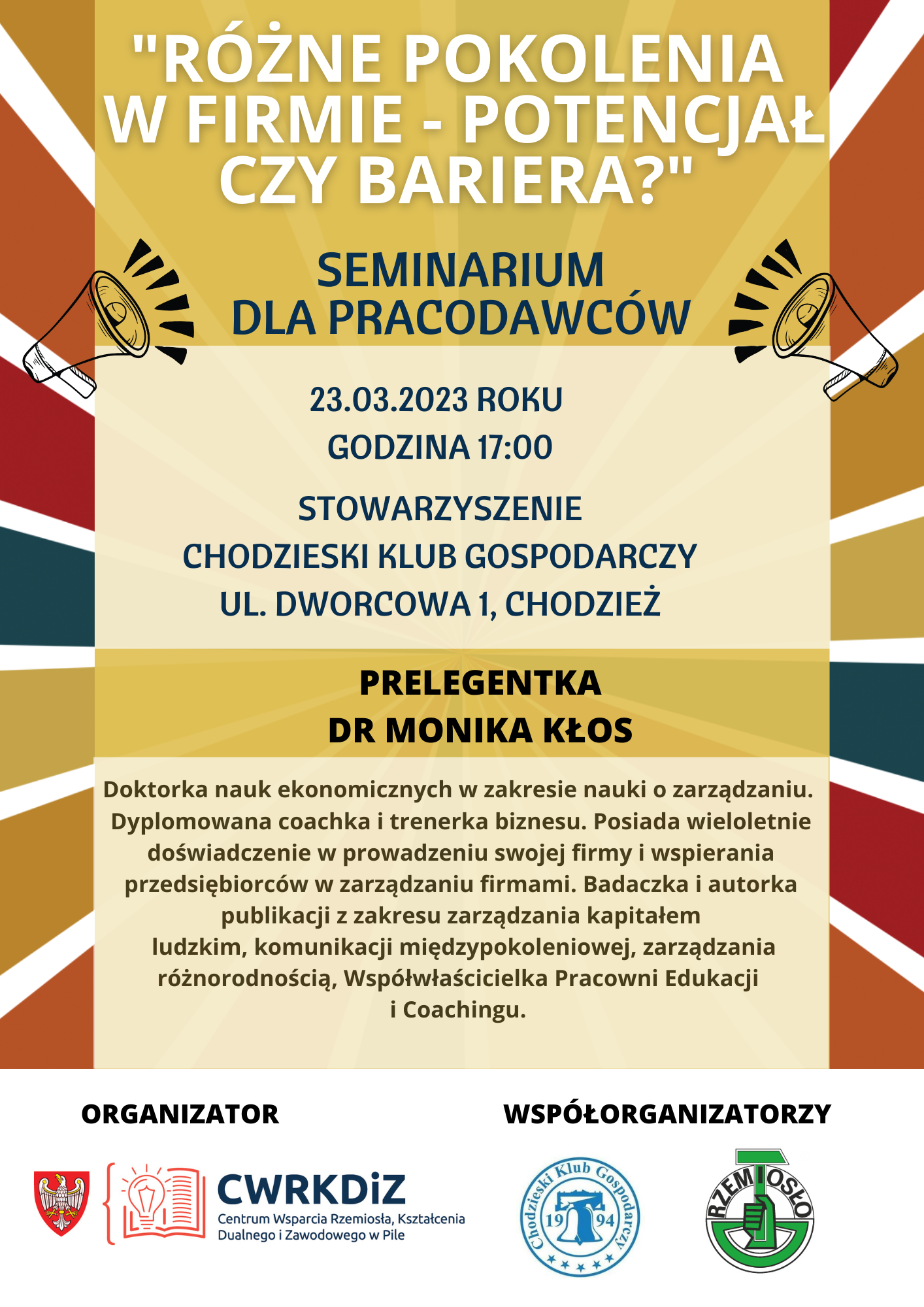 Spotkanie organizowaliśmy wraz ze Stowarzyszeniem Chodzieski Klub Gospodarczy oraz Cechem Rzemiosł Różnych w Chodzieży.
