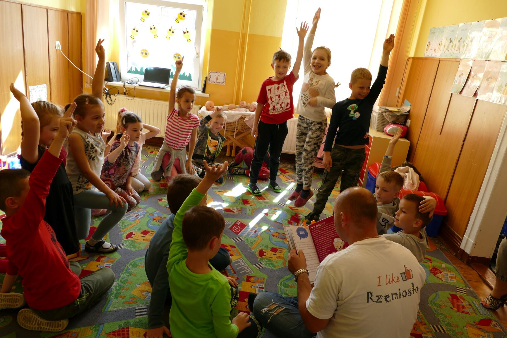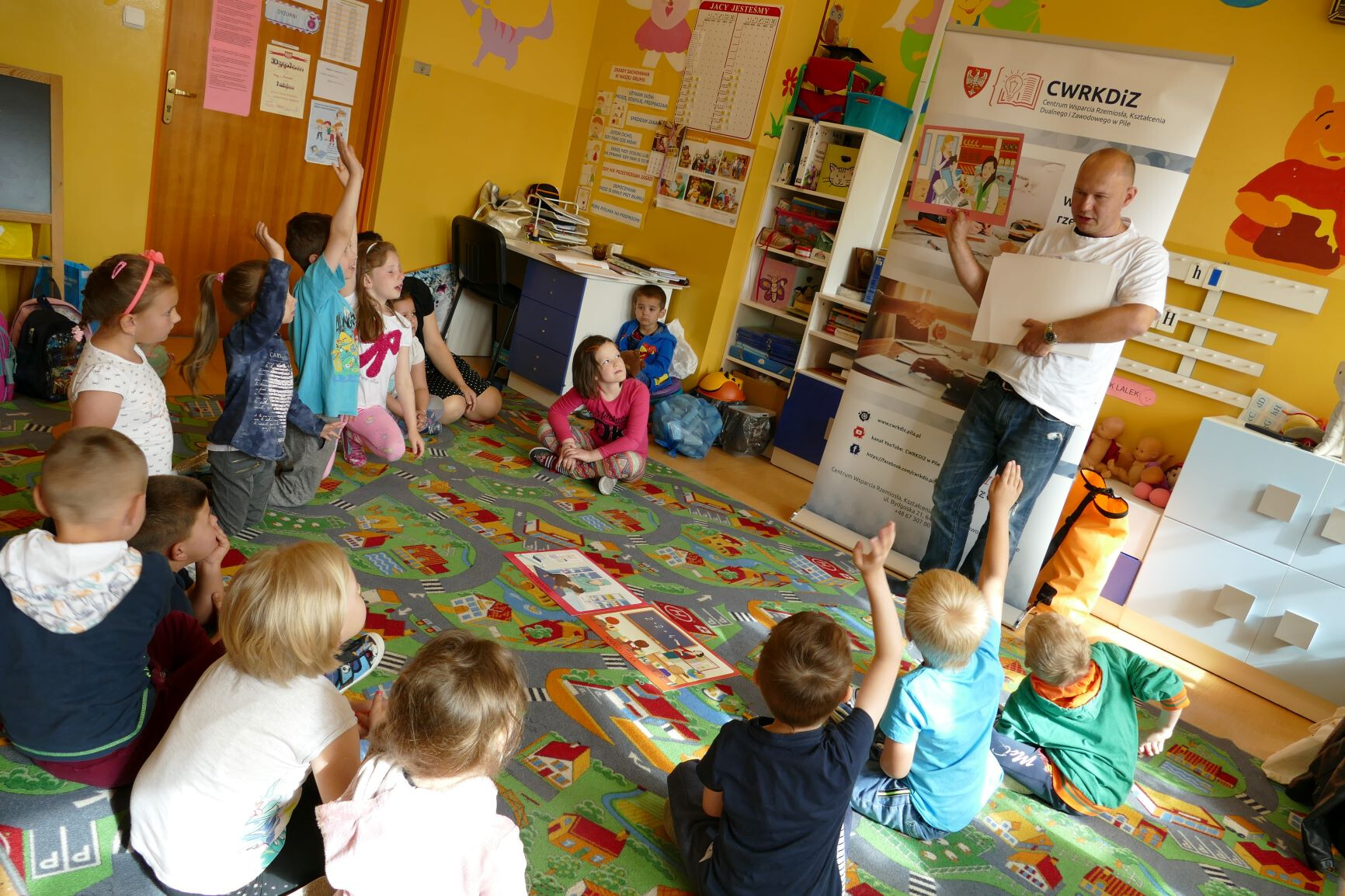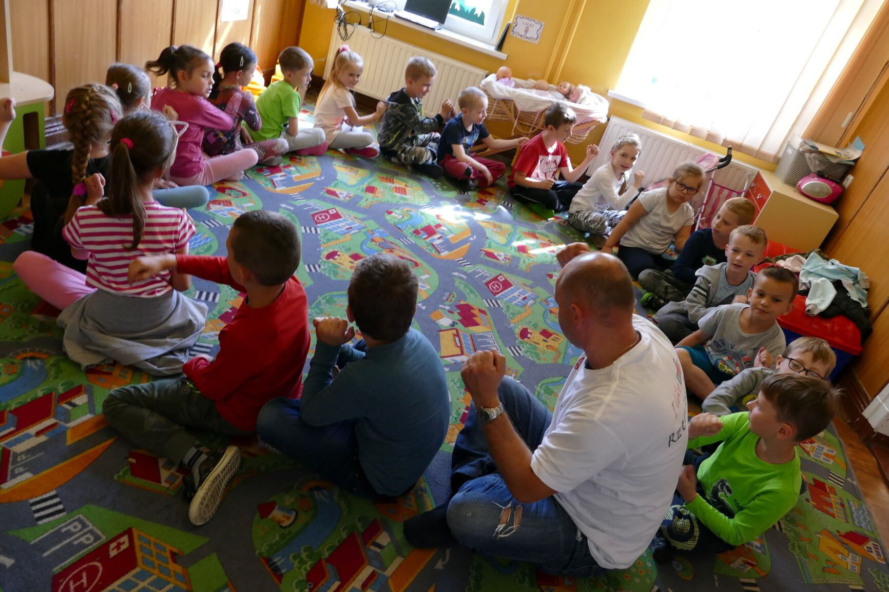 Stasiu Zawodowiec dotarł do Przedszkola Samorządowego w Białośliwiu.