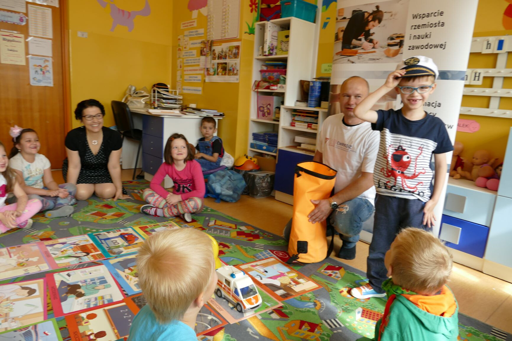 Dzieci z Grupy Słoneczka i Żabki uczyły się nazw zawodów oraz atrybutów poszczególnych profesji. W nagrodę za aktywność otrzymały odblaskowe zawieszki oraz książki ''Zawody czyli kim możesz zostać", z której będą mogły nadal się uczyć o świecie zawodów. Dziękujemy za wspólne działanie.