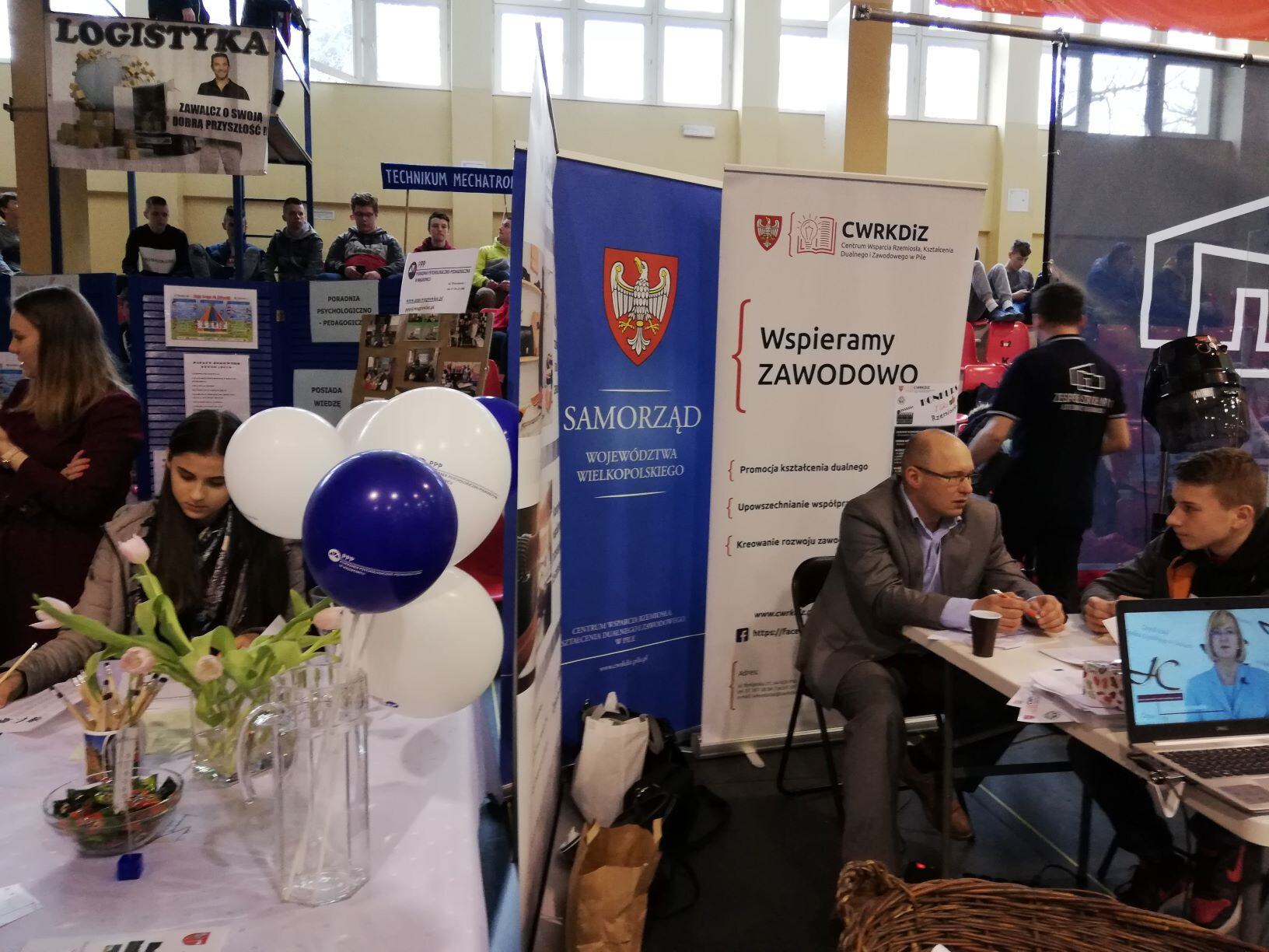 CWRKDiZ w Pile przedstawiło ofertę szkół branżowych i technicznych powiatu wągrowieckiego – wszystkie kierunki kształcenia, dane kontaktowe do szkół oraz prezentowało młodzieży schemat szkolnictwa po reformie. Promowało także kształcenie dualne w zawodach i zakładach rzemieślniczych, które prowadzi Cech Rzemiosł Różnych w Wągrowcu poprzez swoją Rzemieślniczą Szkołę Branżową I Stopnia w Wągrowcu. Pracownicy Centrum przybliżyli młodzieży informacje z rynku pracy w powiecie wągrowieckim na podstawie Barometru Zawodów, akcentując zapotrzebowanie na zawody deficytowe rejonu, a także przeprowadzili ankietę dotyczącą zainteresowań młodzieży kierunkami edukacji i czynników decydujących o wyborze ścieżki edukacyjno-zawodowej. Miała miejsce także promocja Centrum – przedstawiane były w formie filmów realizowane działania i wydarzenia popularyzujące kształcenie zawodowe i dualne. Młodzież aktywnie rozwiązywała również krzyżówkę zawodową i quiz w tematyce edukacji zawodowej, za które otrzymywała drobne upominki.